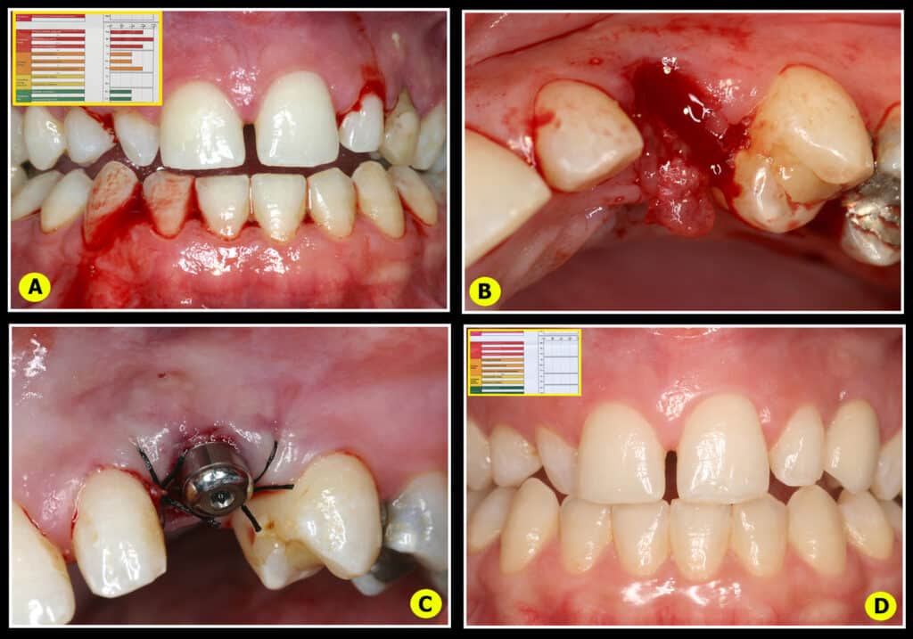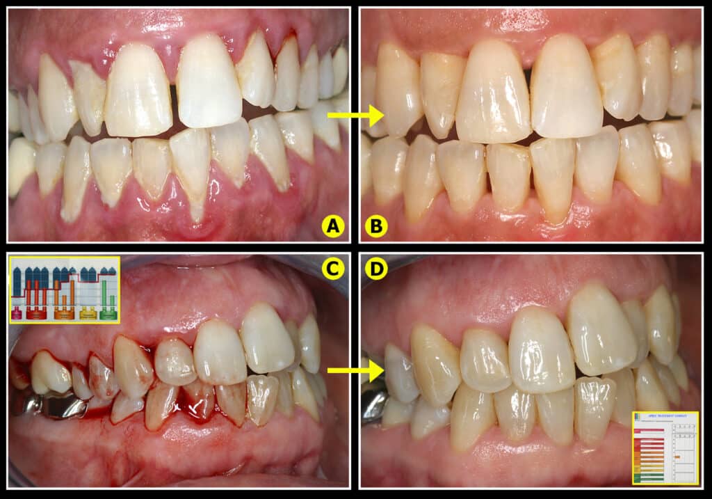 Quatre cas cliniques différents sont présentés avec simplement le même objectif de supprimer les bactéries parodonto-pathogènes et de laisser les tissus gingivaux cicatriser naturellement.
