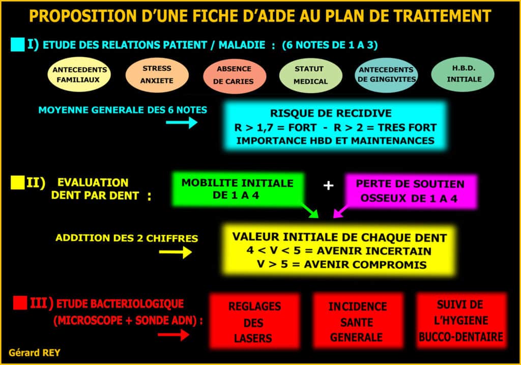 1) L’absence de détermination systématique de l’indice de mobilité et de l’évaluation d’un risque parodontal global (risque de récidive) qui nous semblent essentiels dans l’étude initiale d’un diagnostic destiné à donner au patient une information complète et transparente.